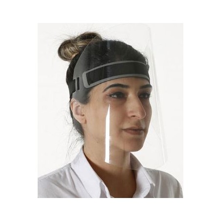 Fabriquée en PETG incolore de 1 mm, cette visière de protection est utile pour se prémunir des gouttelettes rejetées par n'importe quel individu. Idéale et confortable, cette protection peut être portée avec ou sans lunettes de vue. Sa surface lui confère une protection totale du visage et des yeux.